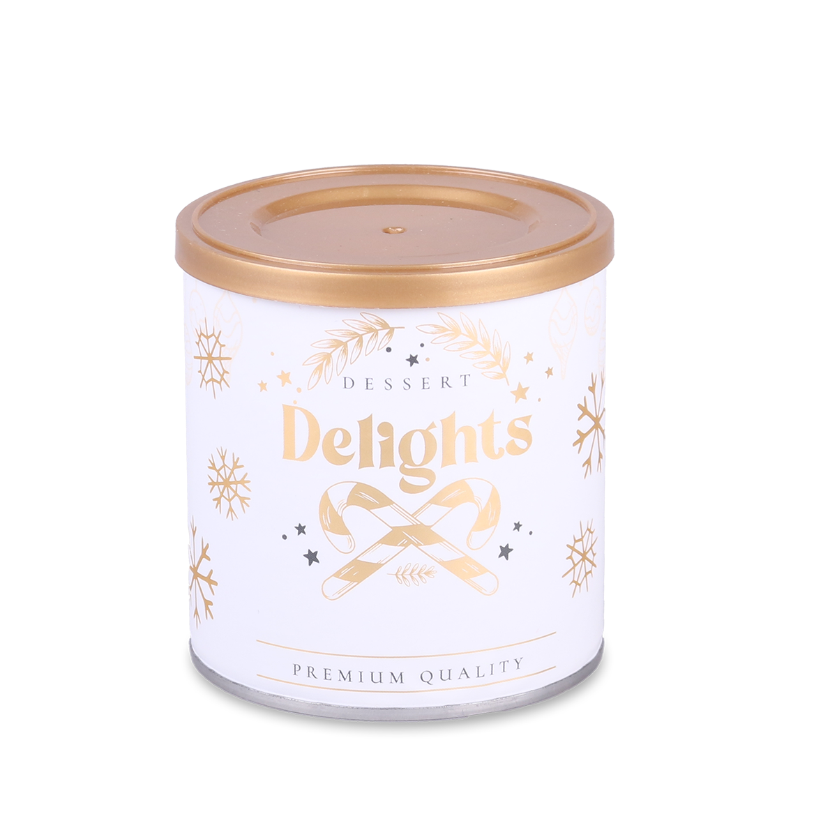 The set includes: Handy Velvet mug rose pink-white / baby blue-white / Handy Cool gray-white with the option of customization, Divine Pralines – almonds in chocolate with raspberry powder (pink) / almonds in chocolate with coconut (blue) / orange peel in dark chocolate (gray), Dessert Delights – blackcurrants in white chocolate with raspberry powder packed in a tube with a winter theme. All packed in a stylish eco cardboard box with a window. Additional customization options: print on the mug, company logo tag, ribbon or sleeve with a winter theme enriched with gold stamping.